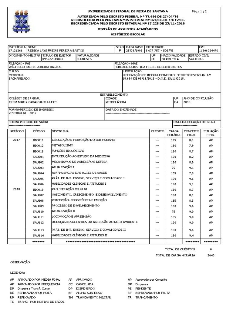 AF APROVADO POR MÉDIA FINAL AP APROVADO AP Aprovado por Conceito