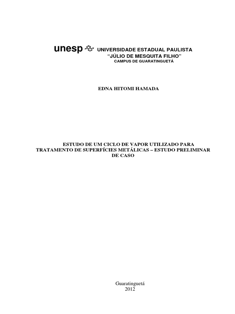 H198e Estudo de um ciclo de vapor utilizado para tratamento de superfícies