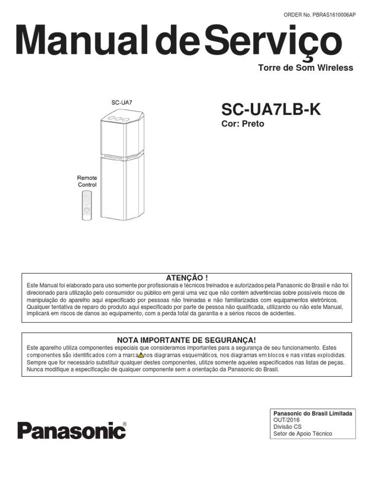 Este Manual foi elaborado para uso somente por profissionais e técnicos treinados e autorizados pela Panasonic do Brasil e não foi