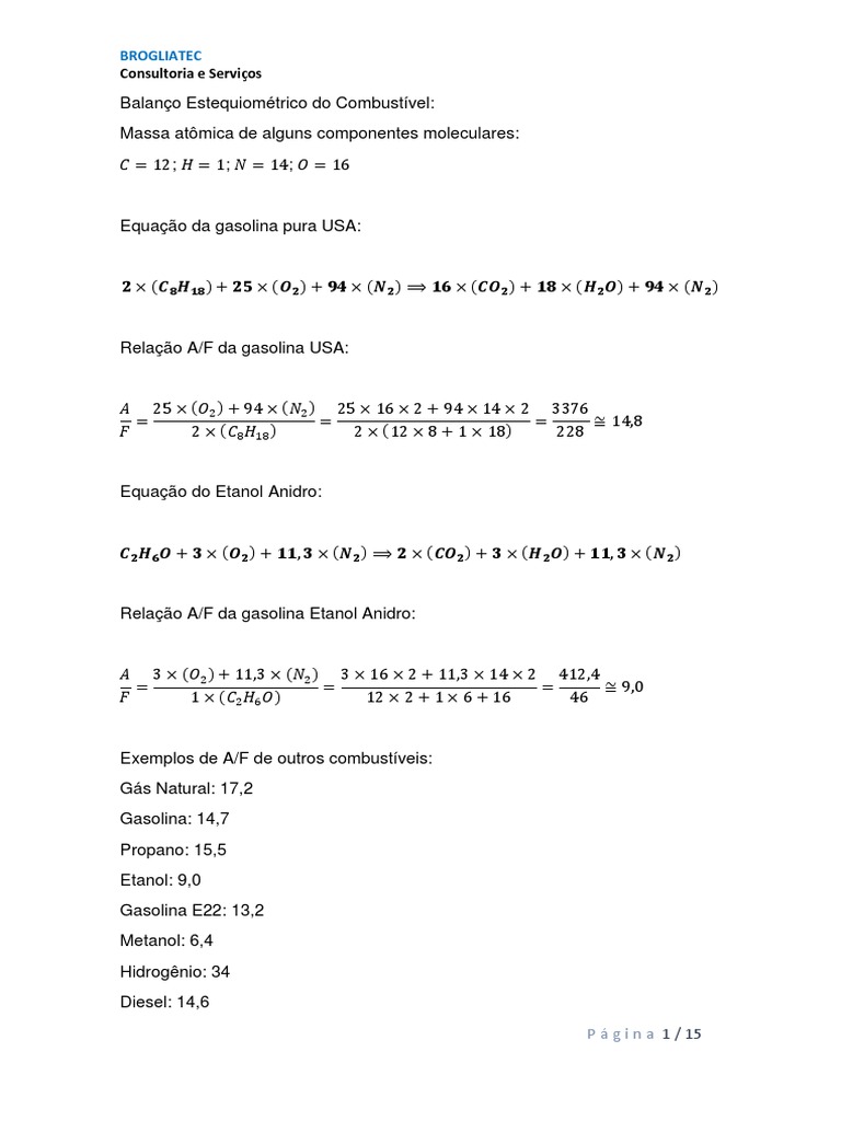 momento da queima e o A/F estequiométrico do combustível, podenso ser