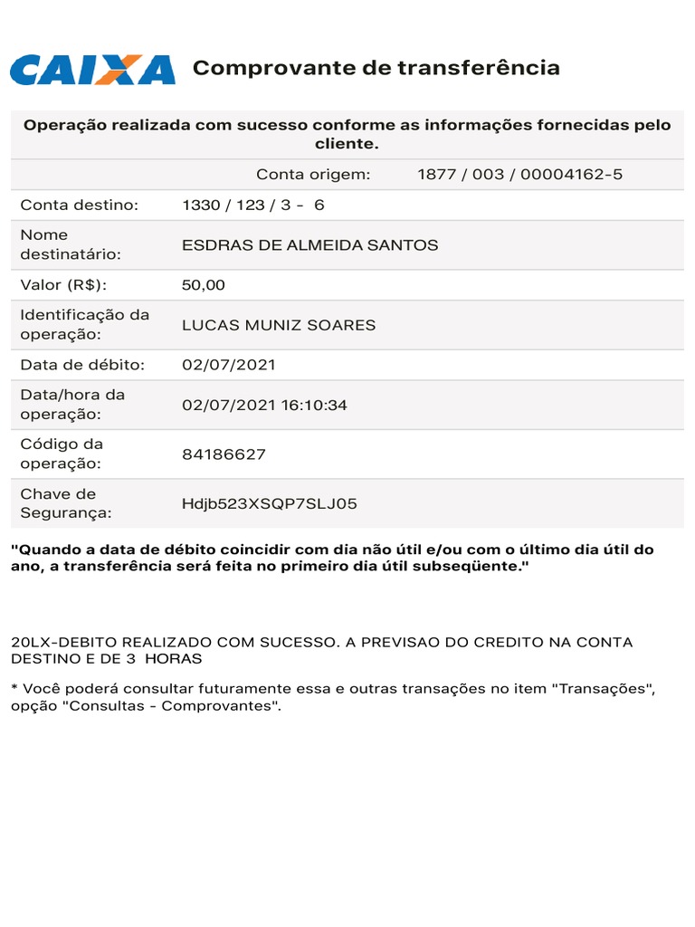 * Você poderá consultar futuramente essa e outras transações no item "Transações",