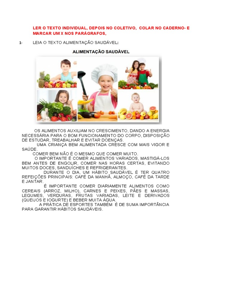 1- LEIA O TEXTO ALIMENTAÇÃO SAUDÁVEL: