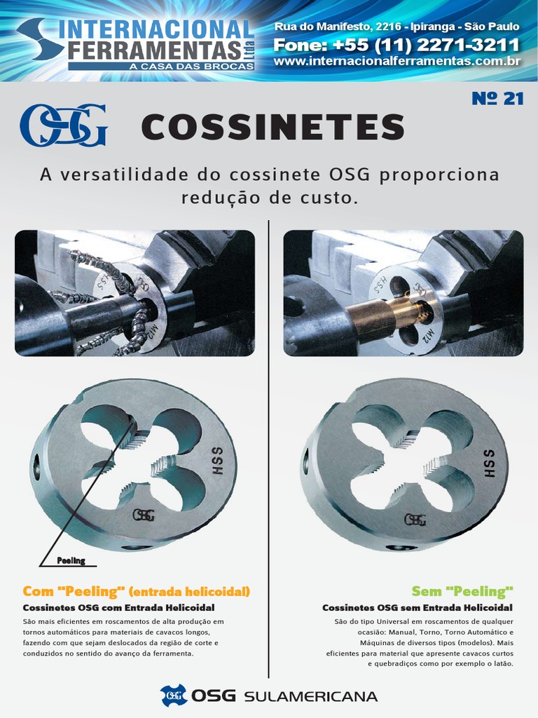 Cossinetes OSG com Entrada Helicoidal Cossinetes OSG sem Entrada Helicoidal