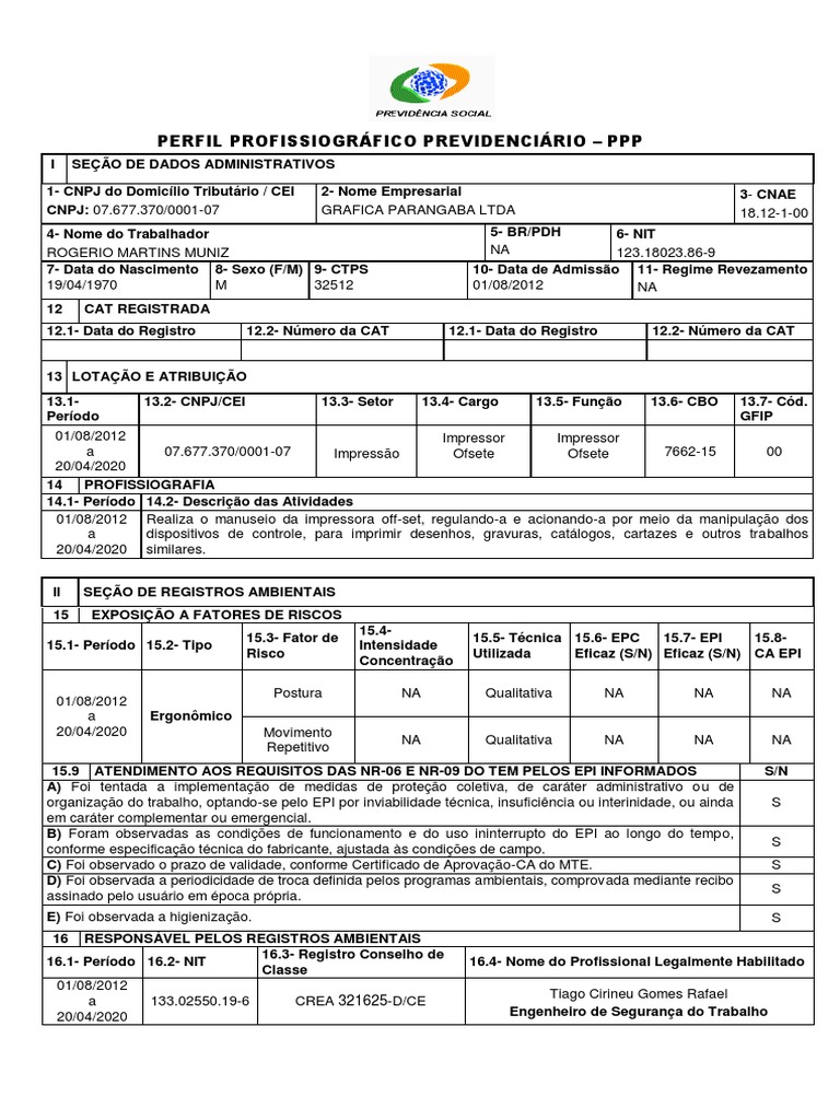 PERFIL PROFISSIOGRÁFICO PREVIDENCIÁRIO – PPP