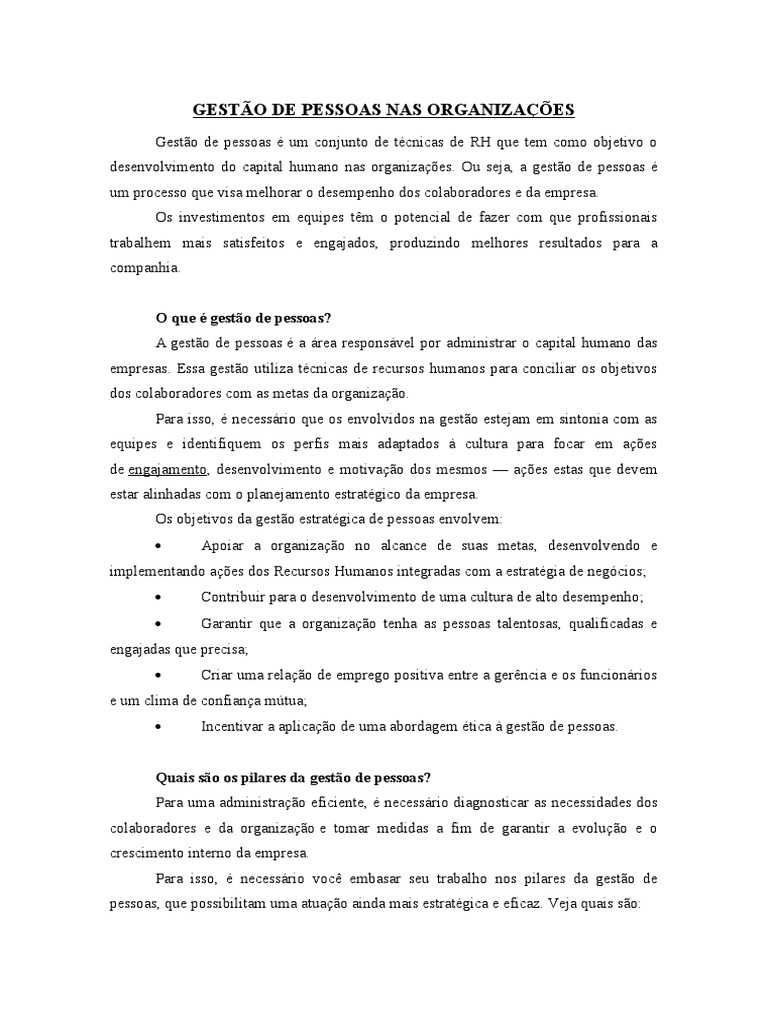 desenvolvimento do capital humano nas organizações. Ou seja, a gestão de pessoas é