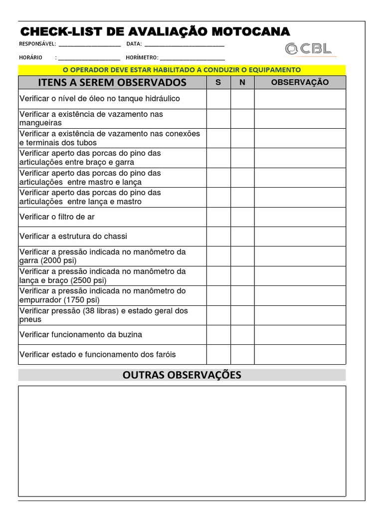 CHECK-LIST DE AVALIAÇÃO MOTOCANA