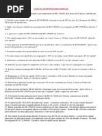 Juros Simples: 1. Montantes: 204, 208, 212 e 216. 2. a) 4% b) 8% c) 0,13% 3. 832,00 4. a) 6% b)