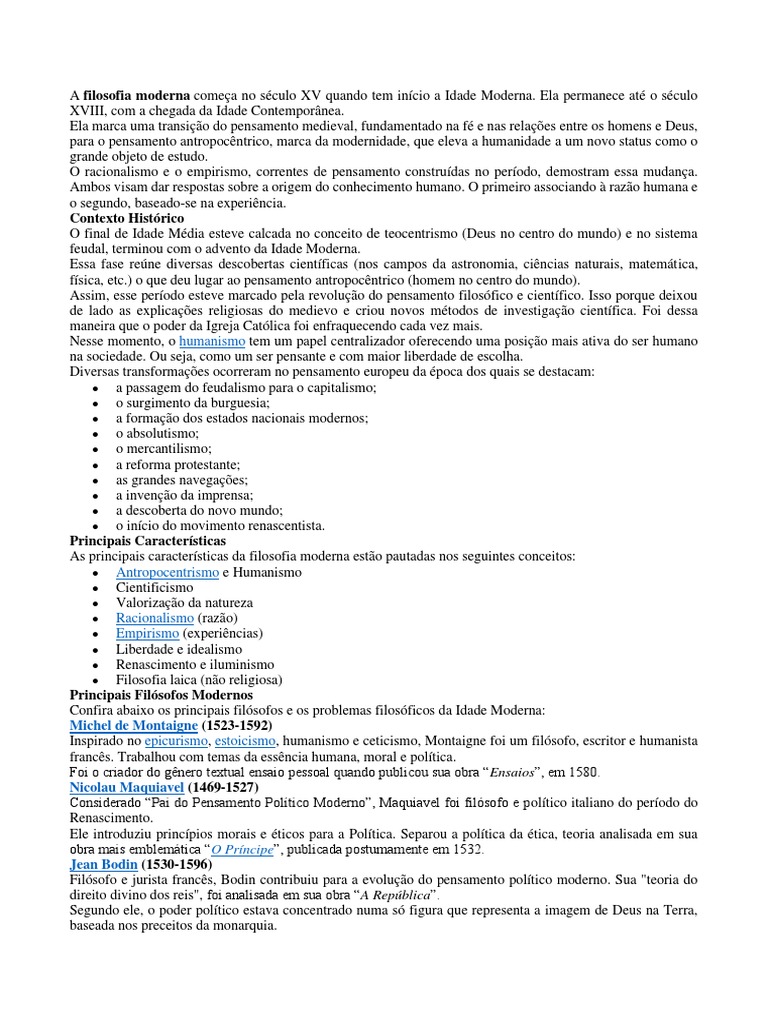 A filosofia moderna começa no século XV quando tem início a Idade Moderna.