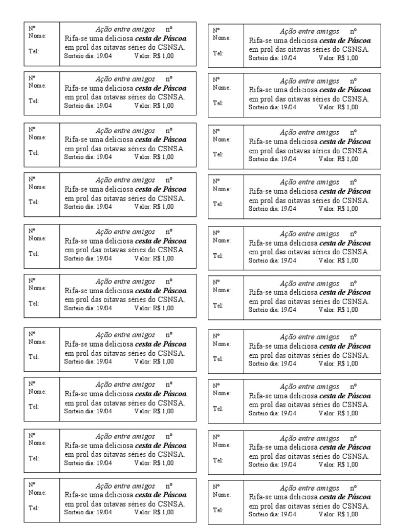 Nome: Rifa-se uma deliciosa cesta de Páscoa Nome: Rifa-se uma deliciosa cesta de Páscoa