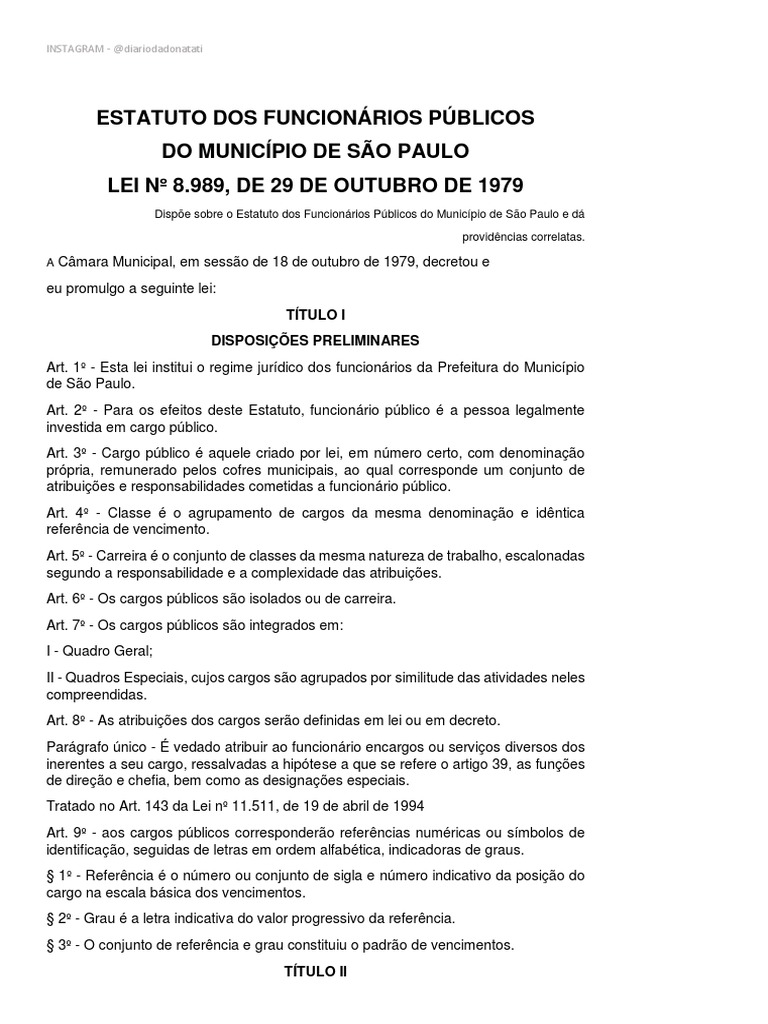 Dispõe sobre o Estatuto dos Funcionários Públicos do Município de São Paulo e dá