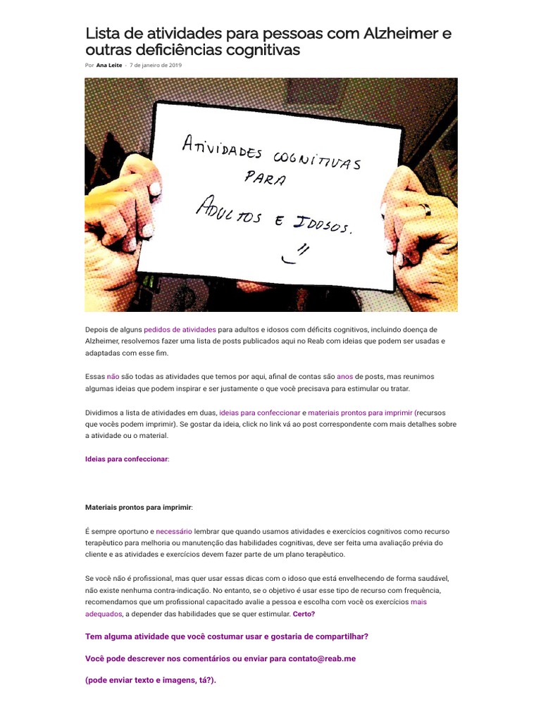 Depois de alguns pedidos de atividades para adultos e idosos com déficits cognitivos, incluindo doença de