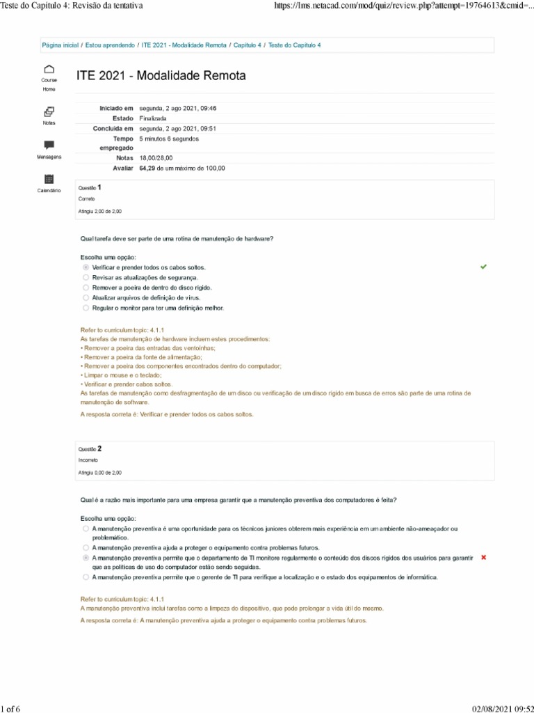 Página inicial / Estou aprendendo / ITE 2021 - Modalidade Remota / Capítulo 4 / Teste do Capítulo 4