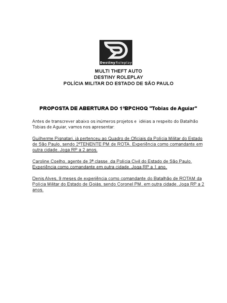 Experiência como comandante em outra cidade. Joga RP a 1 ano.