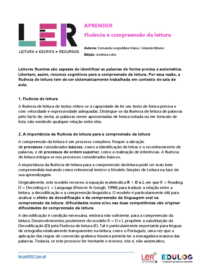 fluência de leitura tem de ser sistematicamente trabalhada em contexto de sala de