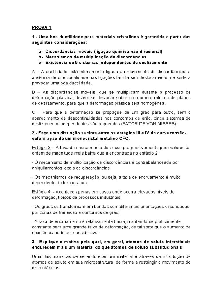 1 - Uma boa ductilidade para materiais cristalinos é garantida a partir das