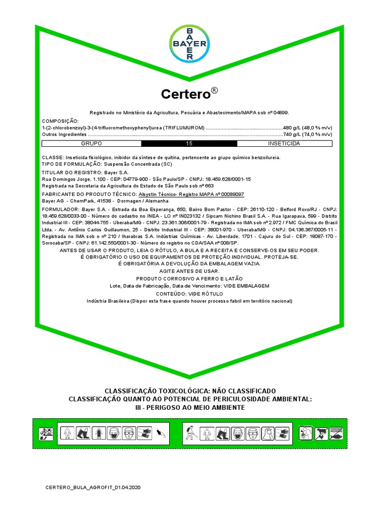 CERTERO® é um inseticida fisiológico para aplicação foliar do grupo químico das benzoilureias, indicado para o controle das