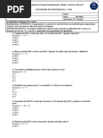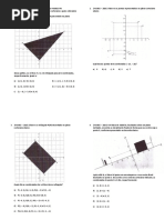 O documento apresenta 9 questões que envolvem interpretação de informações apresentadas em um plano cartesiano, incluindo localização de pontos, trajetos descritos e distâncias entre pontos.