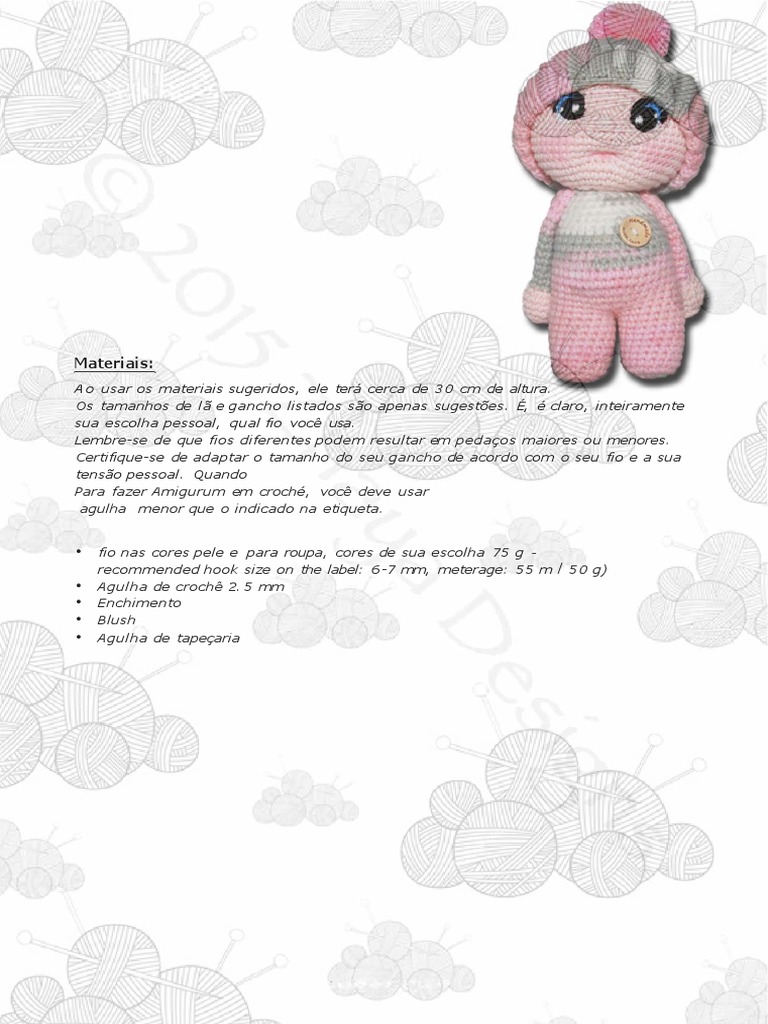 Os tamanhos de lã e gancho listados são apenas sugestões. É, é claro, inteiramente