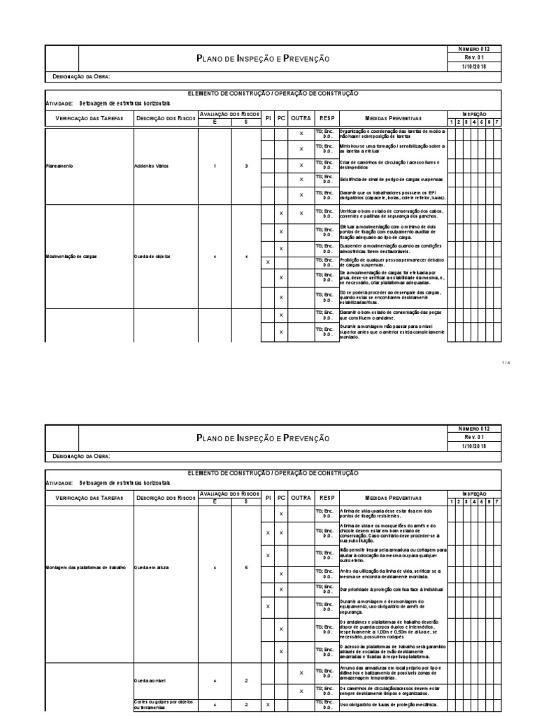 PLANO DE INSPEÇÃO E PREVENÇÃO Rev. 01