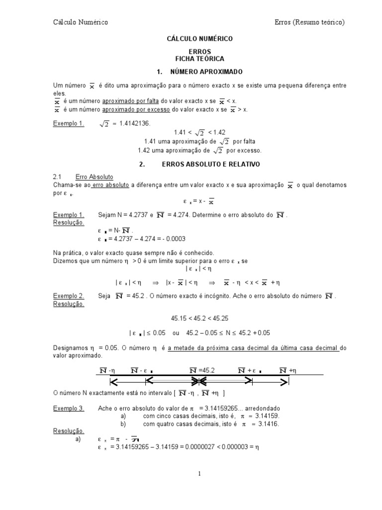 Cálculo Numérico Erros (Resumo teórico)