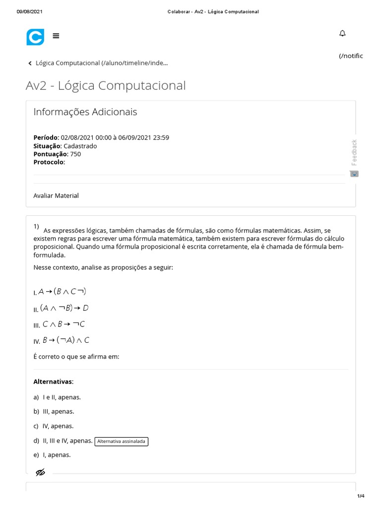09/08/2021 Colaborar - Av2 - Lógica Computacional