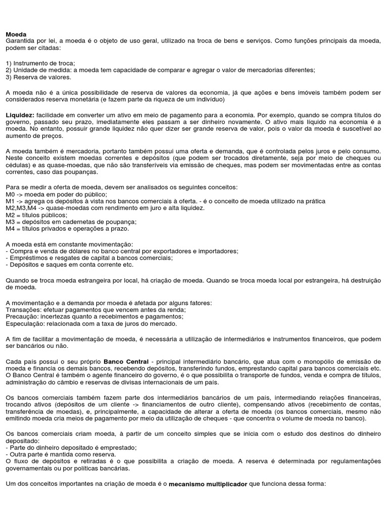 Um dos conceitos importantes na criação de moeda é o mecanismo multiplicador que funciona dessa forma:
