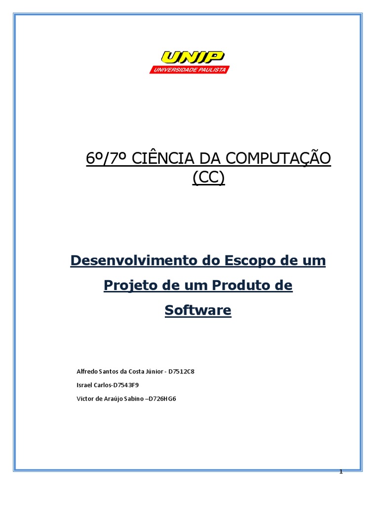 O presente trabalho tem como objetivo o desenvolvimento do escopo de um