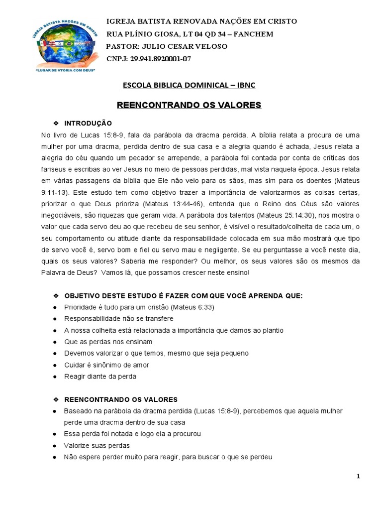 IGREJA BATISTA RENOVADA NAÇÕES EM CRISTO