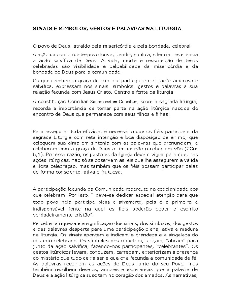 SINAIS E SÍMBOLOS, GESTOS E PALAVRAS NA LITURGIA: PARA