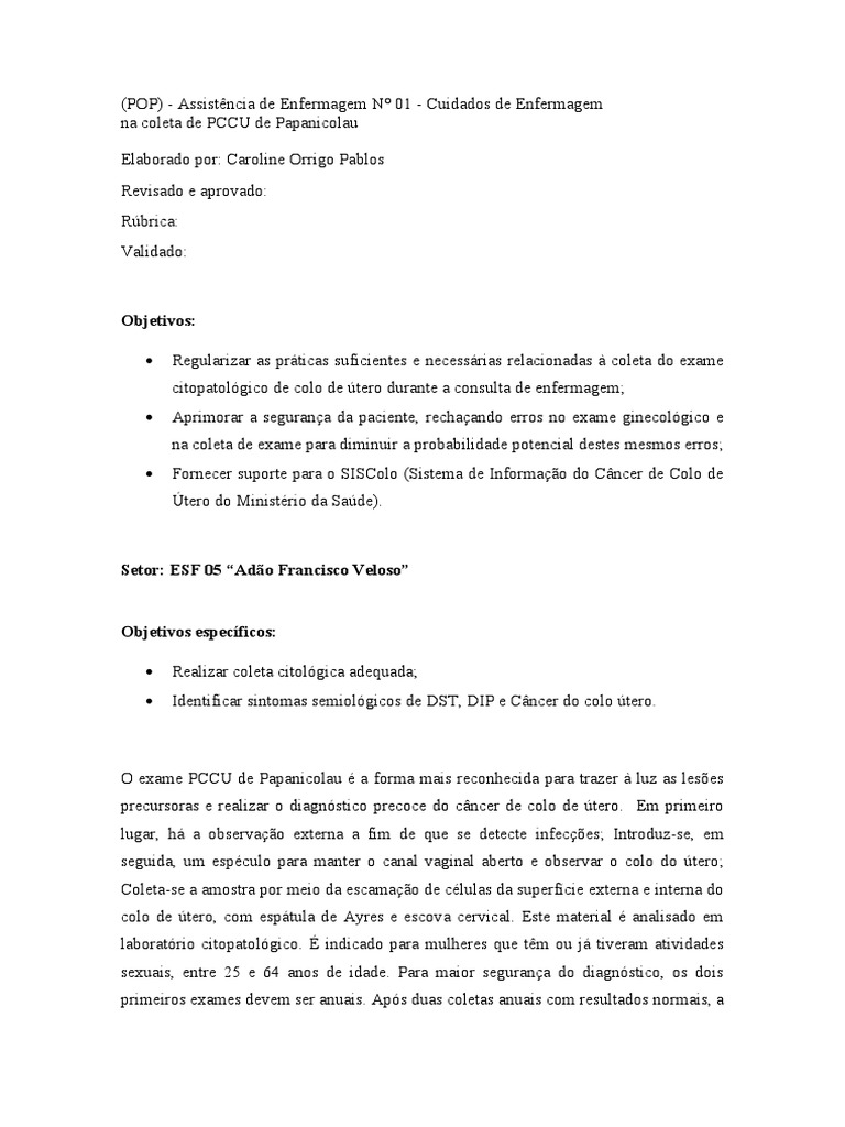 (POP) - Assistência de Enfermagem N° 01 - Cuidados de Enfermagem