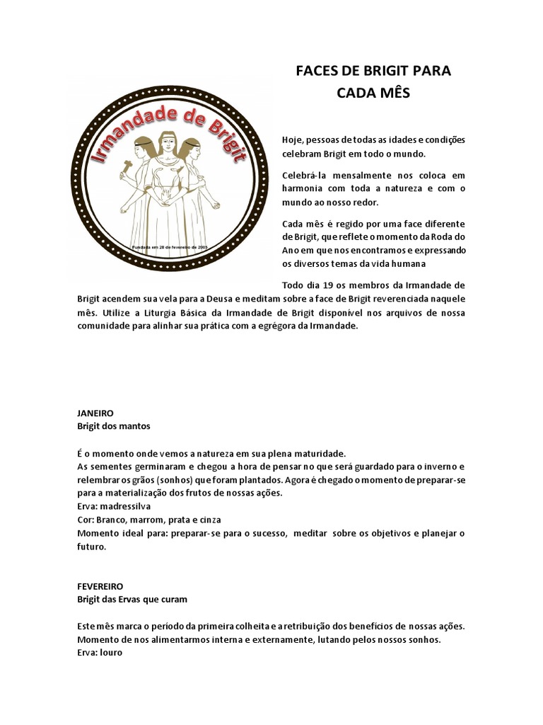mês. Utilize a Liturgia Básica da Irmandade de Brigit disponível nos arquivos de nossa