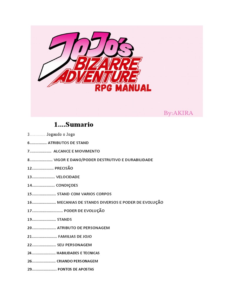 não importa o stand que o Jogador pegue o mestre deve passar os