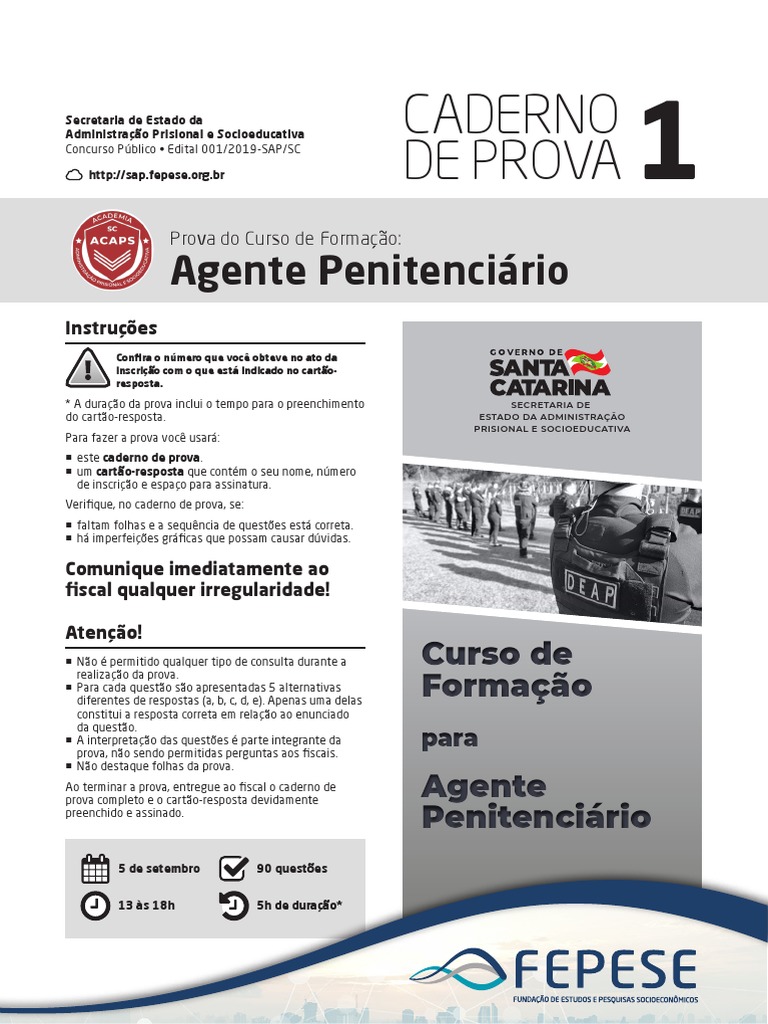 Secretaria de Estado da Administração Prisional e Socioeducativa • Concurso Público • Edital 001/2019-SAP/SC