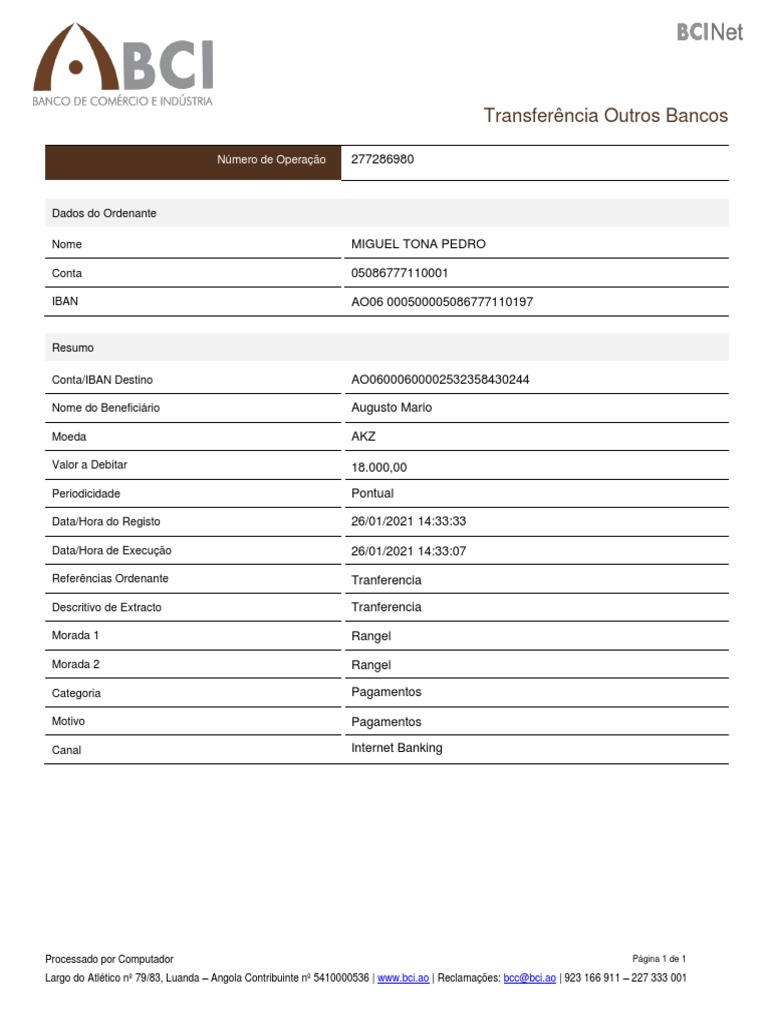 Largo do Atlético nº 79/83, Luanda – Angola Contribuinte nº 5410000536 | [Link] | Reclamações: bcc@[Link] | 923 166 911 – 227 333 001