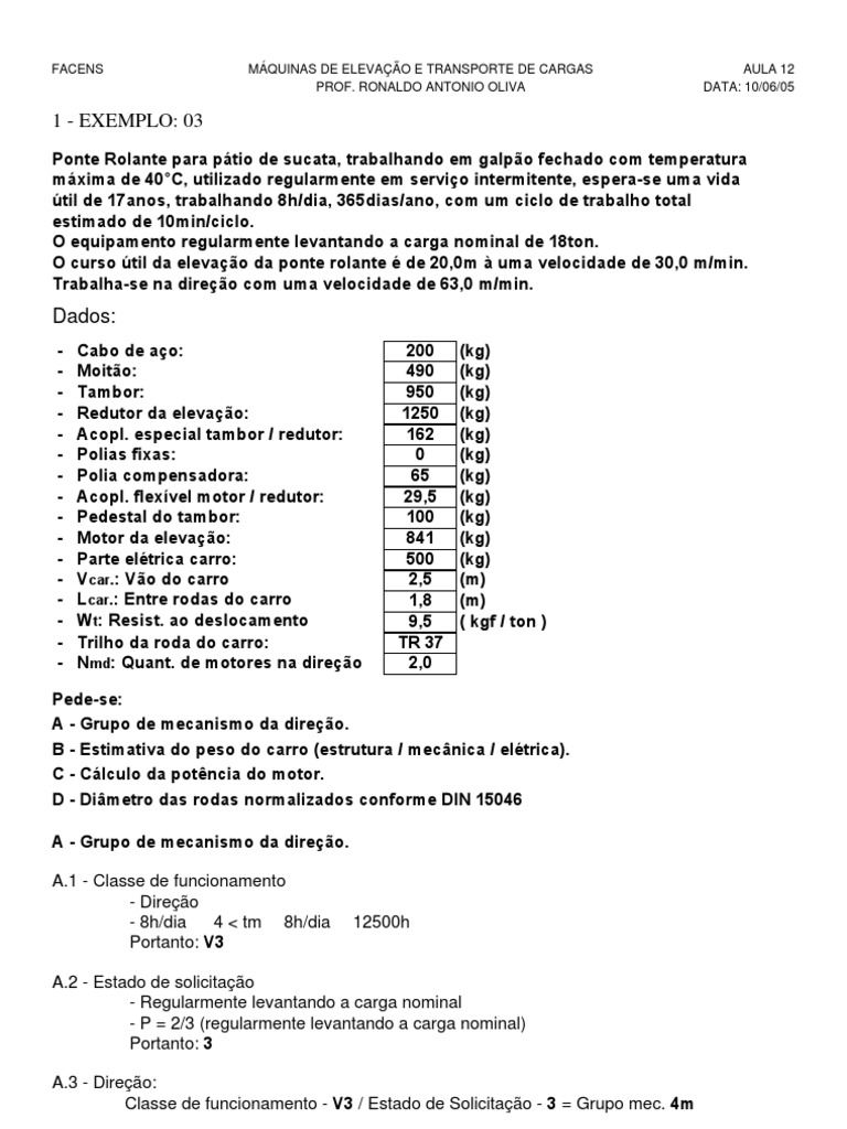 FACENS MÁQUINAS DE ELEVAÇÃO E TRANSPORTE DE CARGAS AULA 12