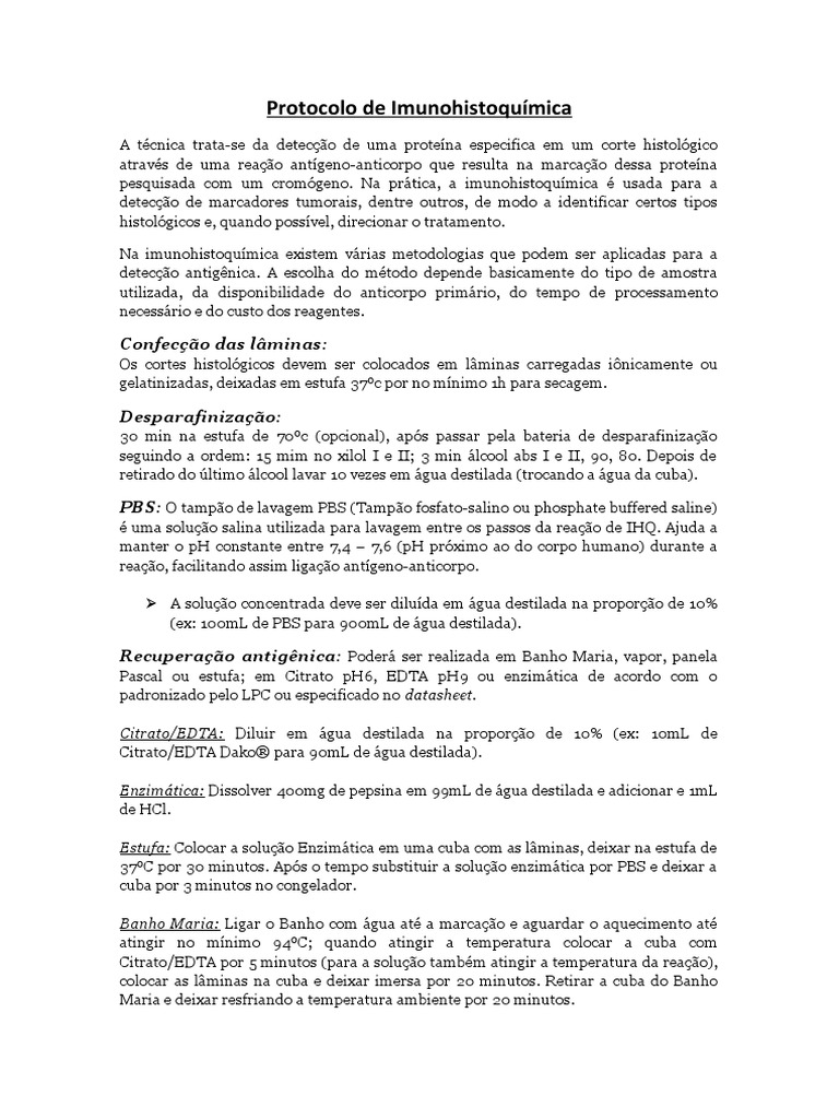 OBS: A diluição do anticorpo deve ser feita de acordo com a padronização do LPC, se