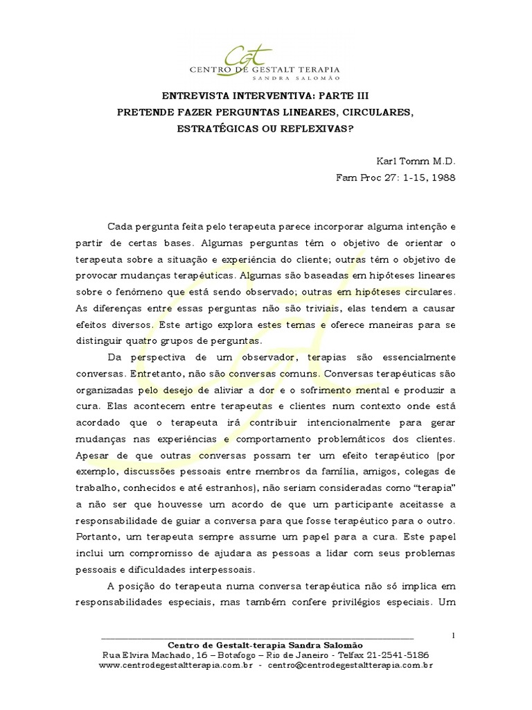 uma pergunta foi linear, circular, estratégica ou reflexiva, terá dificuldade em