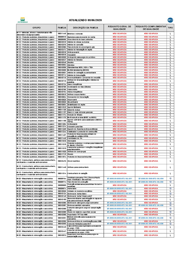 M-12 - Produtos químicos, bioquímicos e gases 98010520 Detergente para poços de petróleo NÃO SE APLICA NÃO SE APLICA L