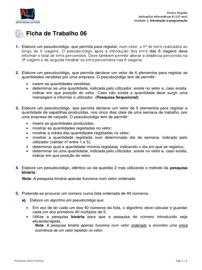 Professor Nuno Pereira Pág. 1 / 1
