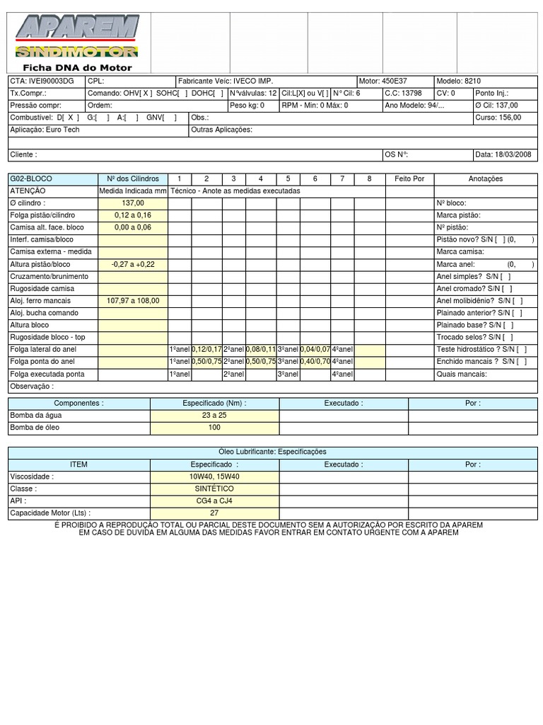 G02-BLOCO Nº dos Cilindros 1 2 3 4 5 6 7 8 Feito Por Anotações