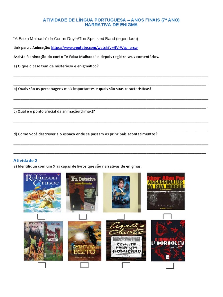 a) Identifique com um X as capas de livros que são narrativas de enigmas.
