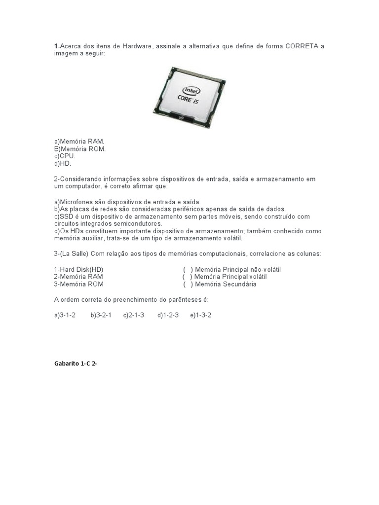 1-Hard Disk(HD) ( ) Memória Principal não-volátil
