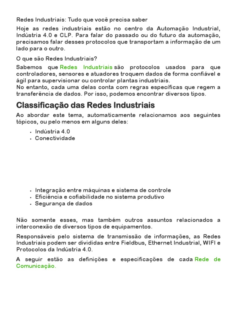 de Redes Industriais que são: