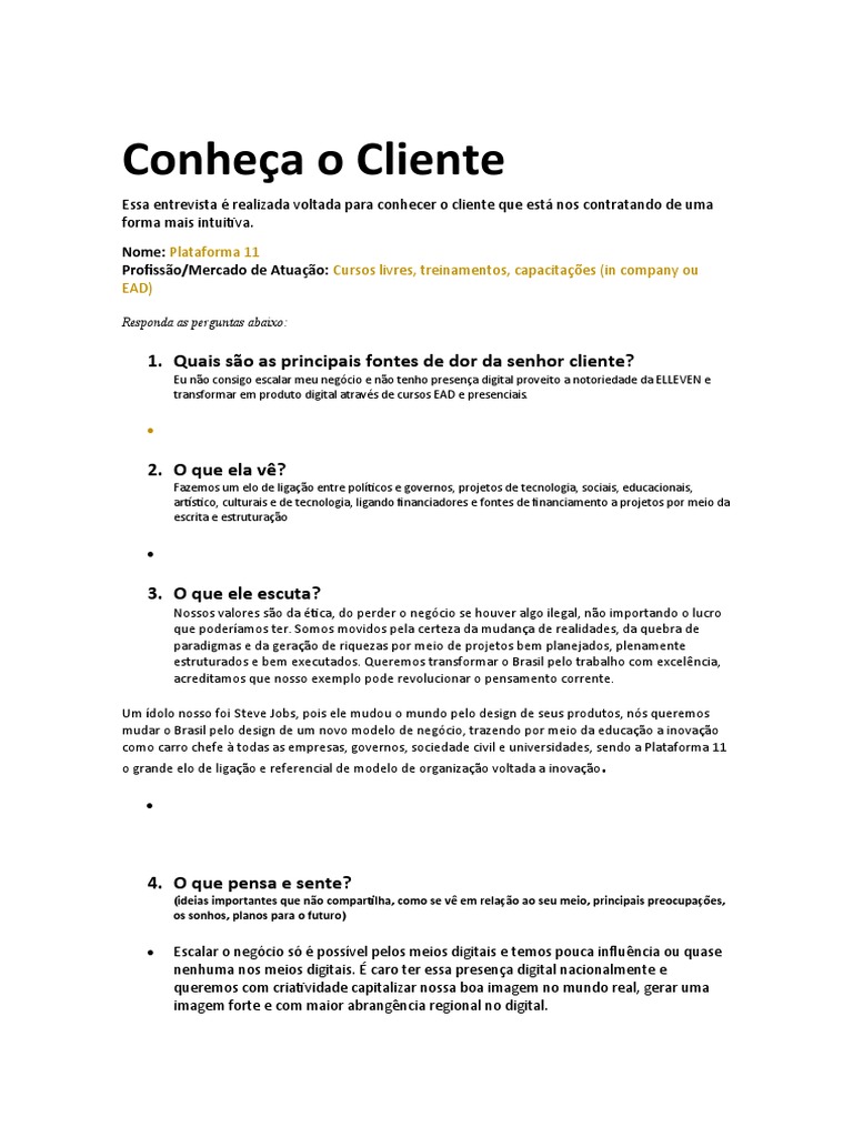 Essa entrevista é realizada voltada para conhecer o cliente que está nos contratando de uma
