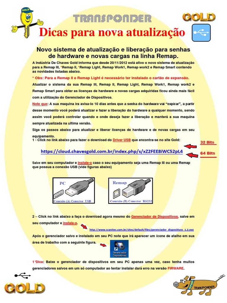 A Indústria De Chaves Gold informa que desde 20/11/2012 está ativo o novo sistema de atualização