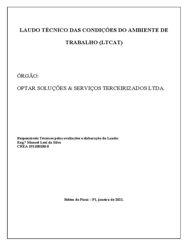 LAUDO TÉCNICO DAS CONDIÇÕES DO AMBIENTE DE