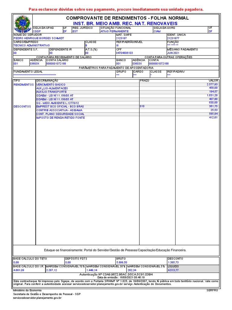 Para esclarecer dúvidas sobre seu pagamento, procure imediatamente sua unidade pagadora.