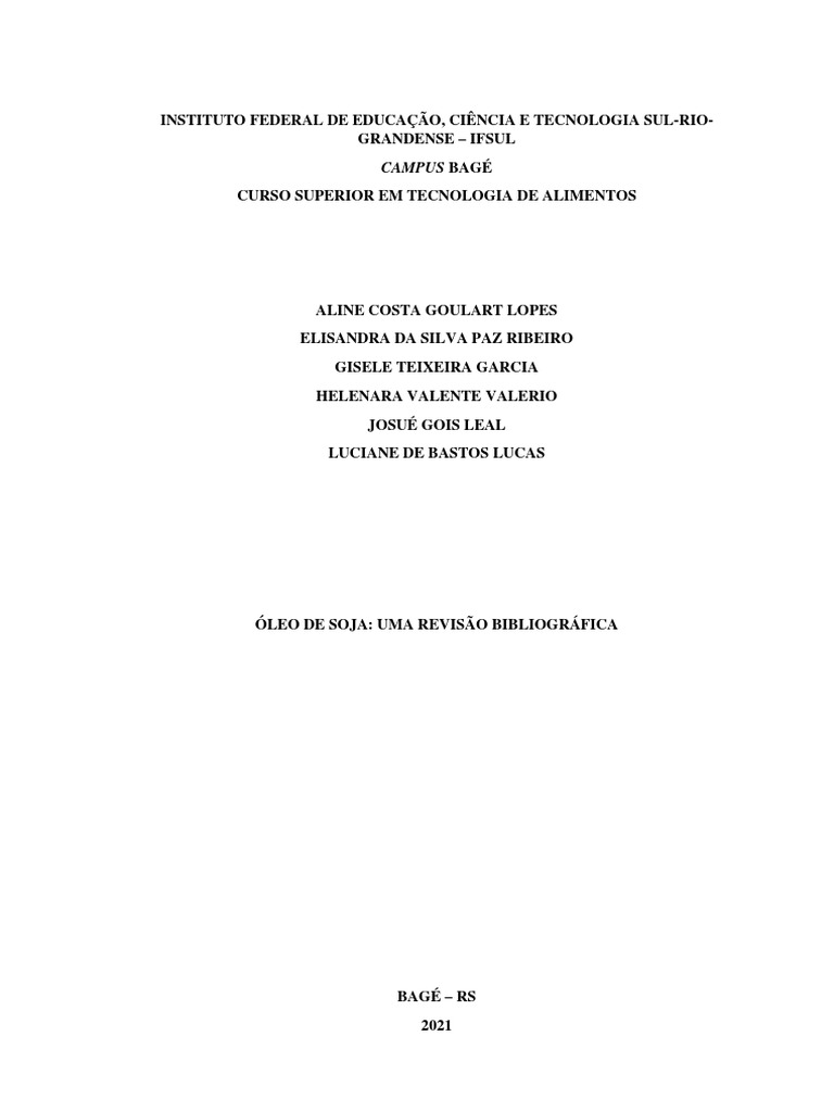 ÓLEO DE SOJA: UMA REVISÃO BIBLIOGRÁFICA