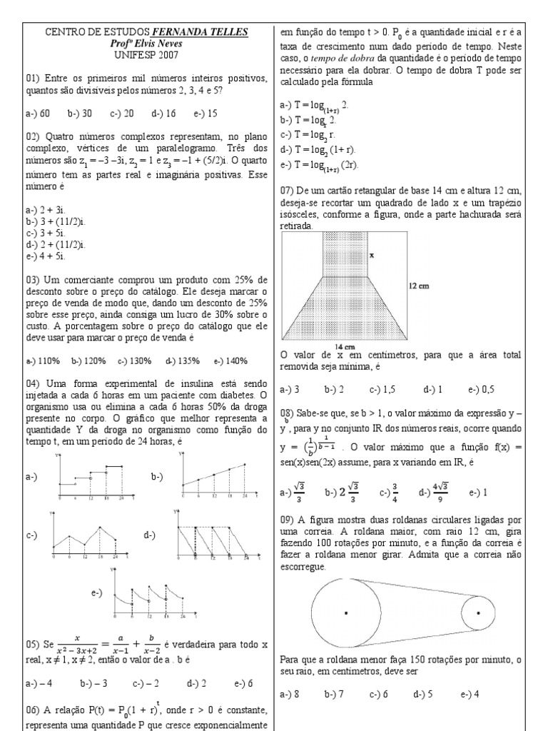 UNIFESP 2007 caso, o tempo de dobra da quantidade é o período de tempo
