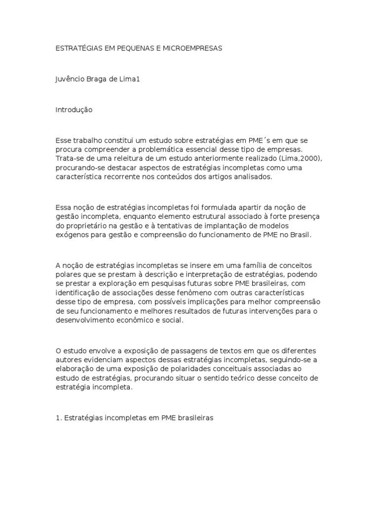 1.1. Evidências do caráter incompleto da prática de estratégias em PME´s
